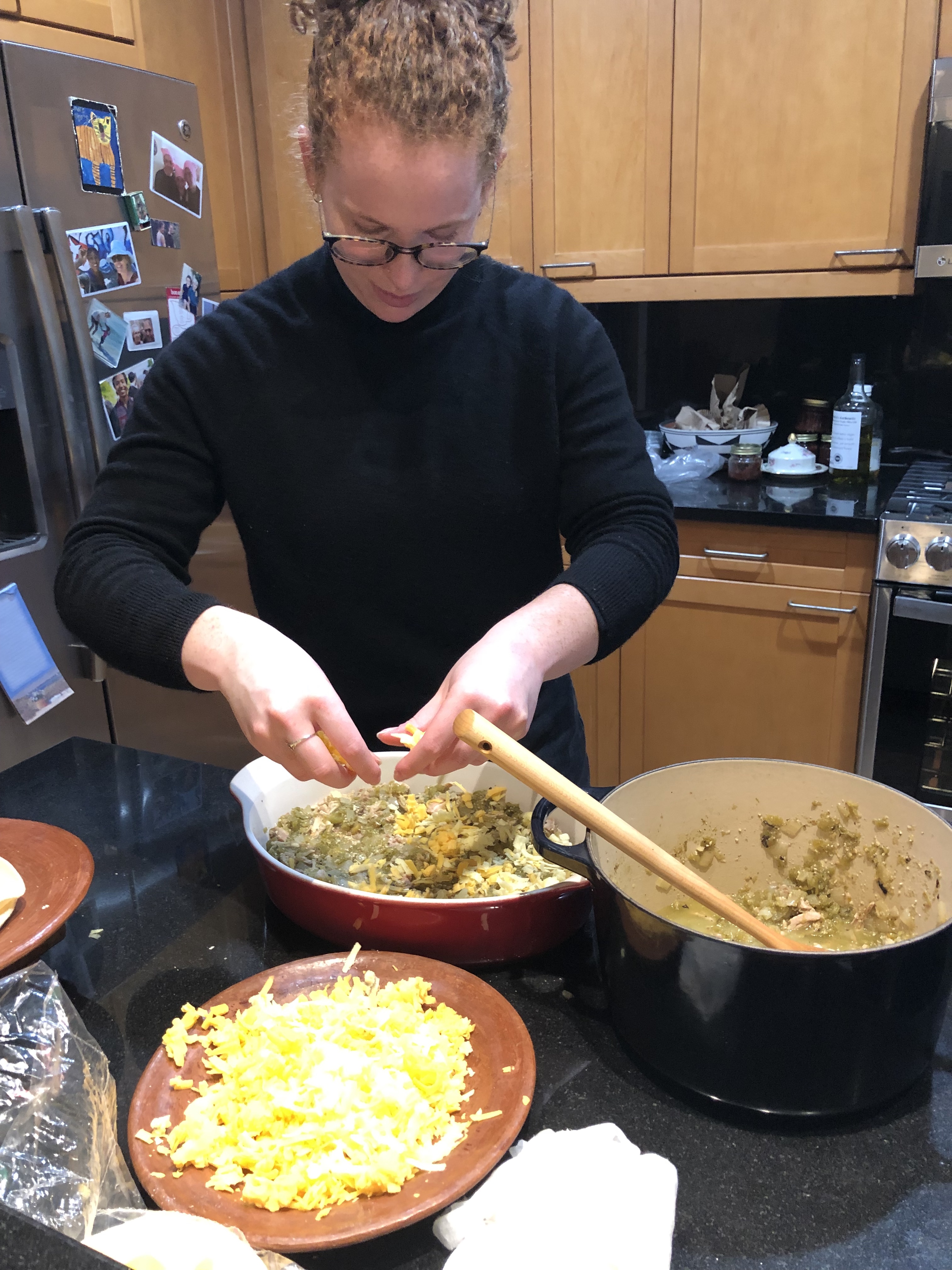 I tried to make enchiladas in New York on my own. it was not very successful. Claire’s daughter came to visit for Thanksgiving and gave me a tutorial in making her mother’s delicious green chile enchiladas!